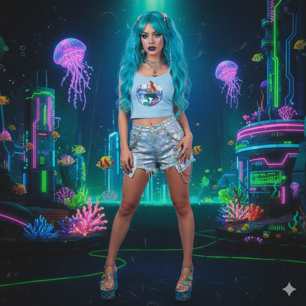 Crop top de sirena | Top corto verano mujer | Moda playa y festival | Estilo sirena mágico | Ropa de verano colorida | Top casual femenino | Outfit playero | Moda juvenil trendy | Diseño único de sirena